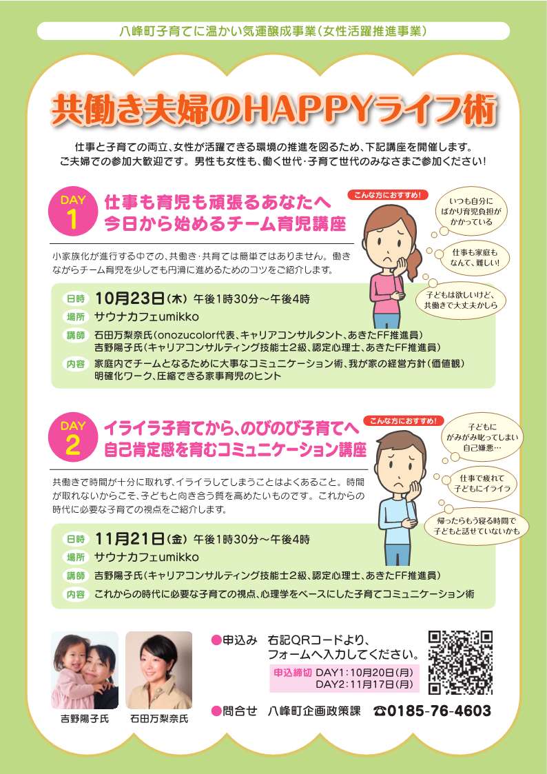 仕事と子育ての両立、女性が活躍できる環境の推進を図るため、下記講座を開催します。