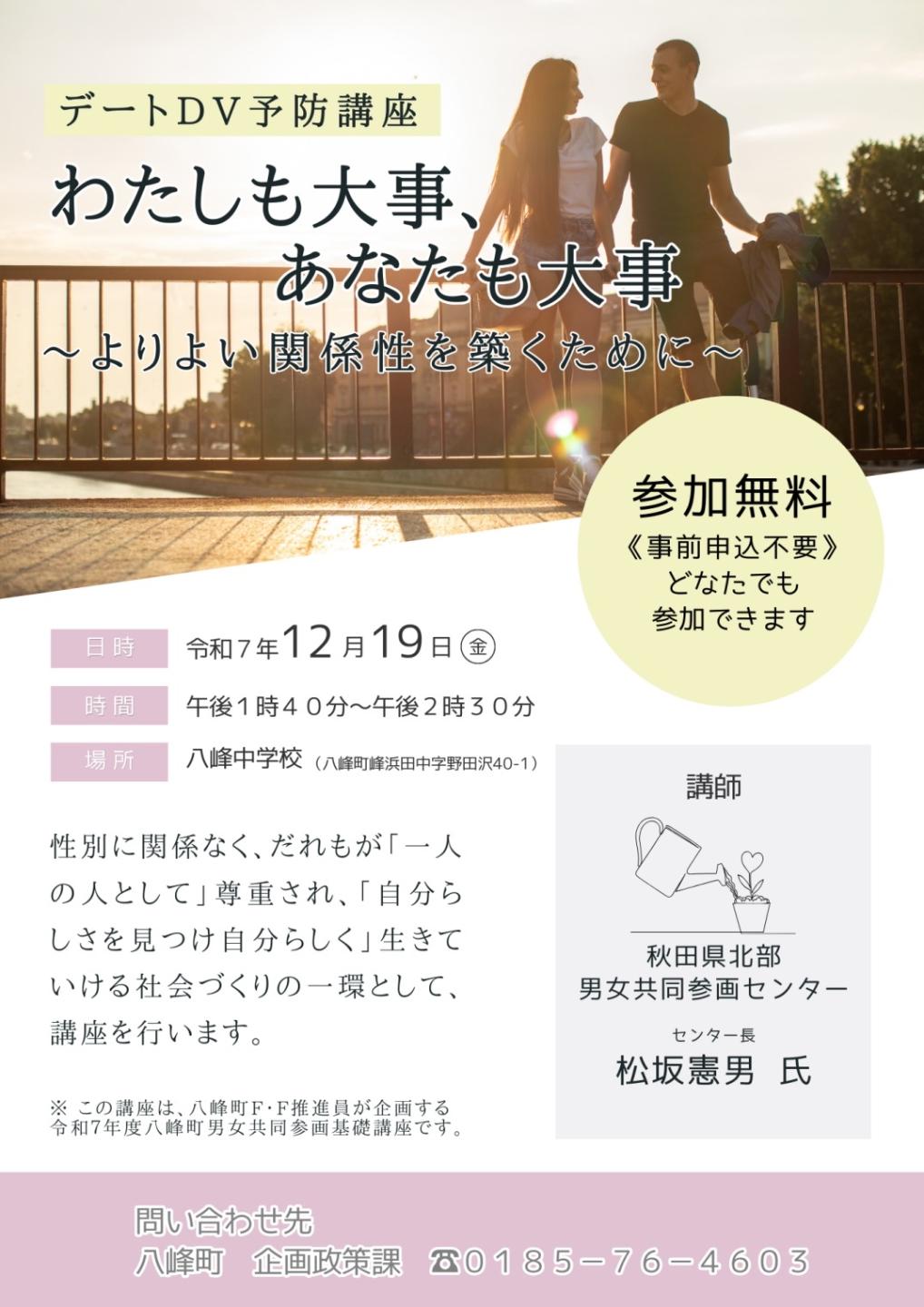 性別に関係なく、誰もが「一人の人として」尊重され、「自分らしさを見つけ、自分らしく」生きていける社会づくりの一環として、八峰町FF推進員の企画・運営により男女共同参画基礎講座を開催します。